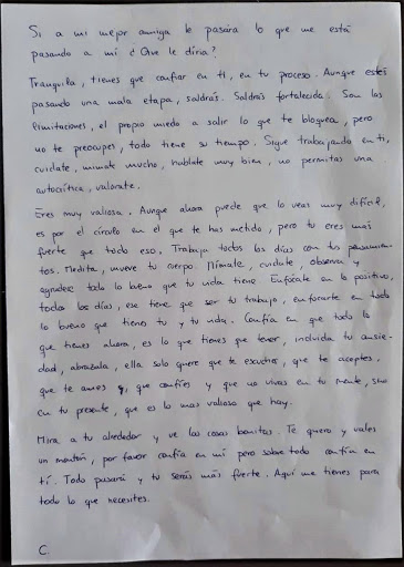 A continuación podéis leer la carta de una persona que está trabajando la aceptación de sus emociones y que generosamente nos ha permitido compartirlo con todas aquellas que puedan estar atravesando una situación parecida.